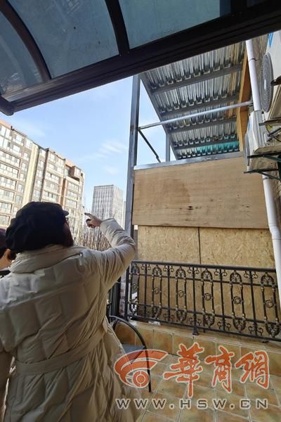 黄女士家住西安市高新区林隐全国2期17栋,2月13日上午,华商报劲风新闻记者来到该小区,其在该栋楼一住户门牌下贴有两张《责令期限撤除奉告书》,能看到三四层南侧正在建立的钢架构,原天台方位盖了两层,建立的面积有30多平方米。在该房子的北侧,也同样是在天台上建立两层阳光房。现场并未看到工人干活,敲门无人应对。